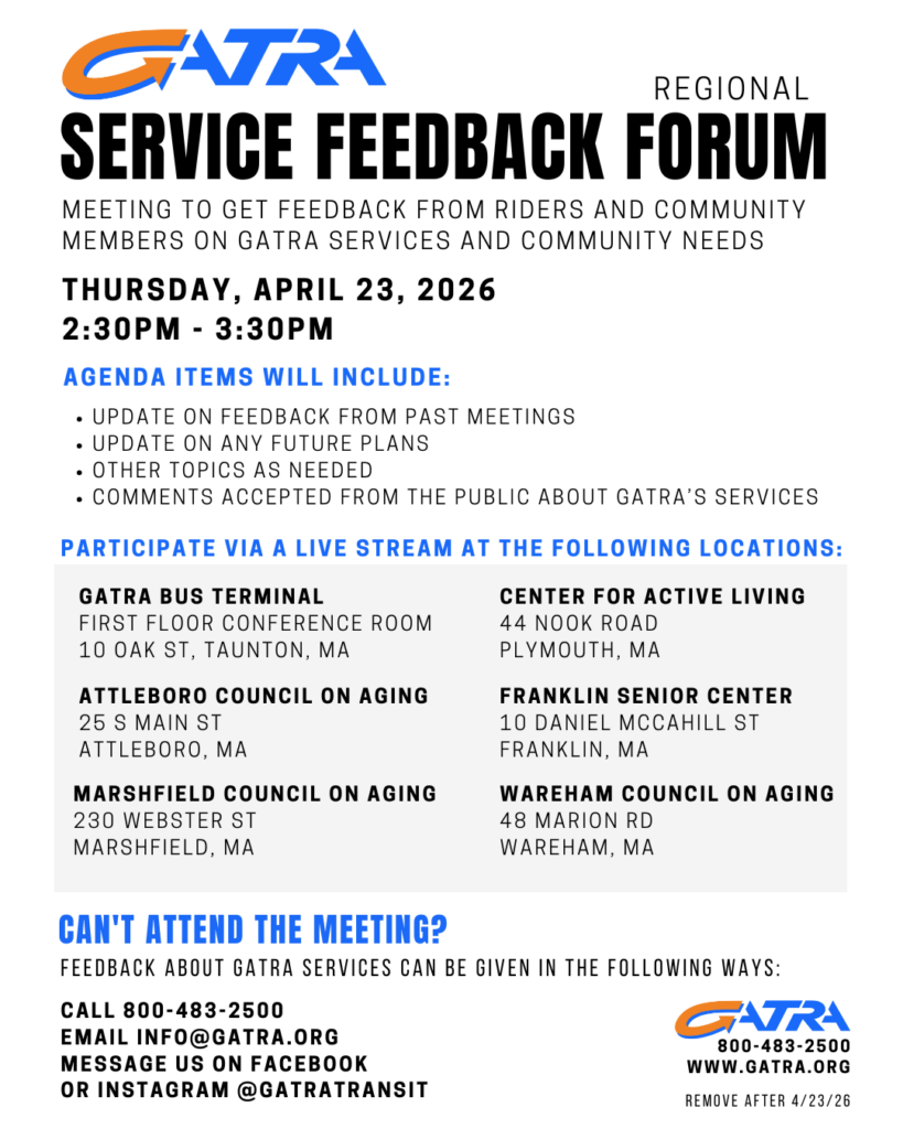 GATRA Bus Terminal first floor conference room 10 Oak St, Taunton, MA